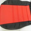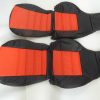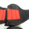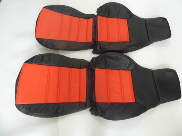 The price is for front pair of seat covers consisting of 2 headrests, 2 back covers, and 2 bottom covers in black synthetic leather with red inserts, black stitching.