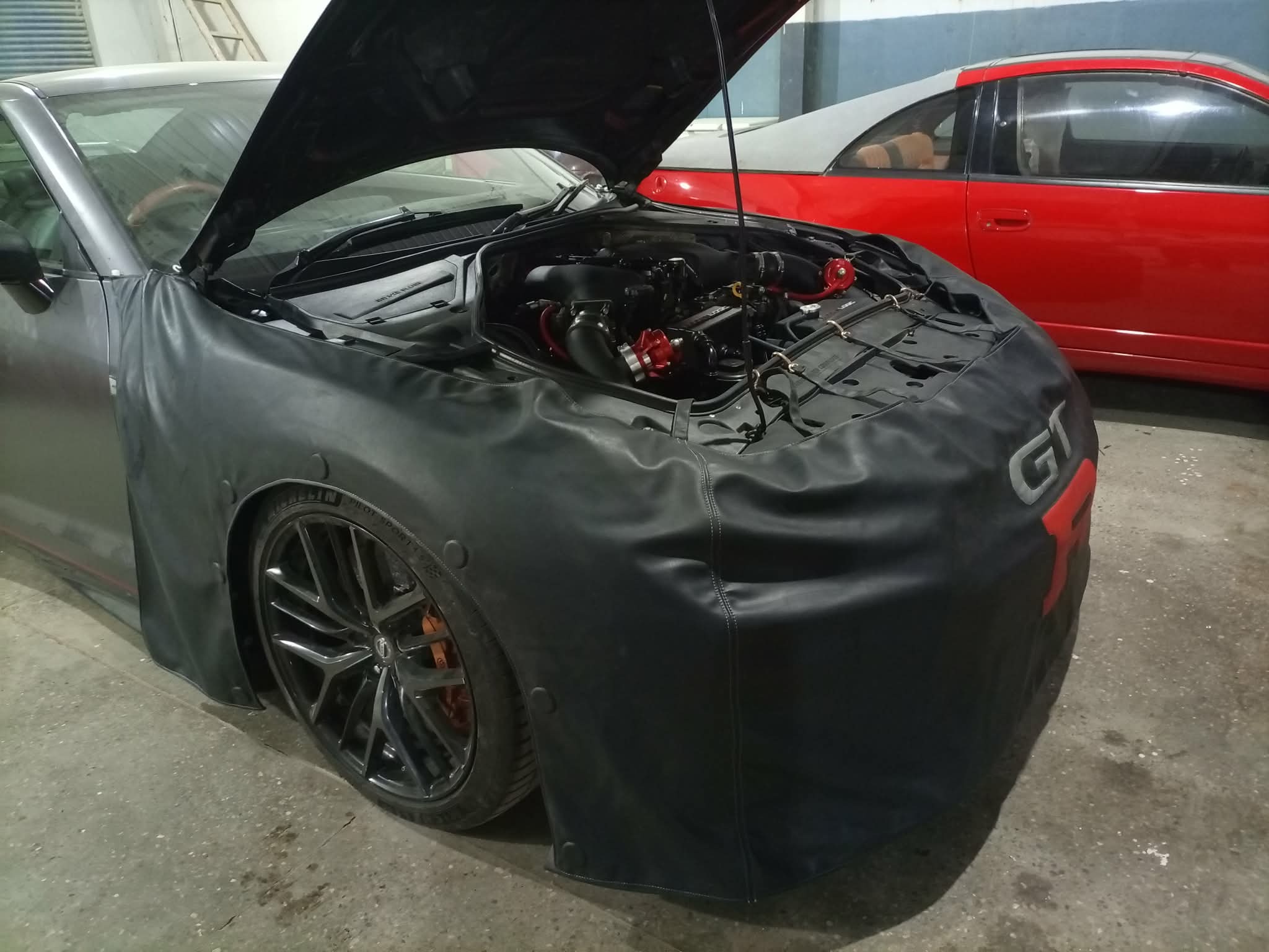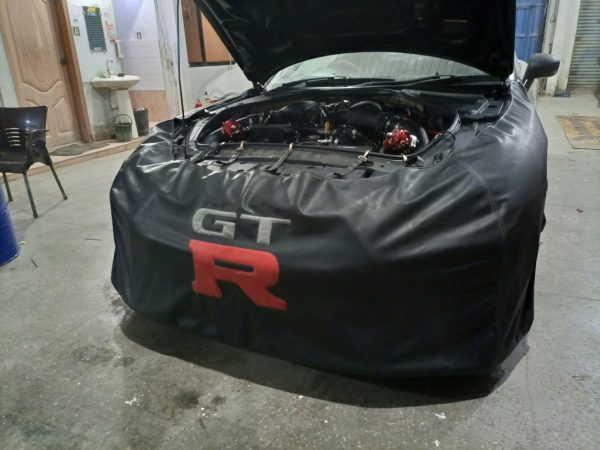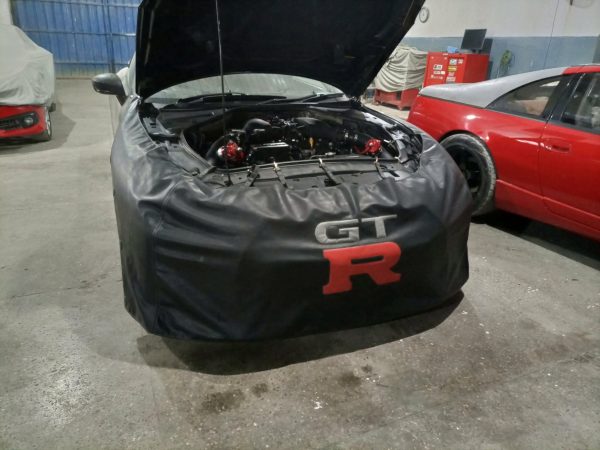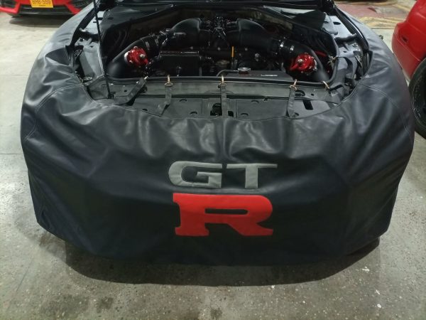 Protect your GTR with our car service cover! Once in a while you would have to work on your GTR which is mostly under the hood or on the front end, it is recommended to cover the fenders and bumper with service cover so that they won’t get any scratches or dings. Our service cover comes with pre-installed magnets on both sides and J-Clips for easy hookup! Made with heavy duty vinyl with soft fleece type backing.